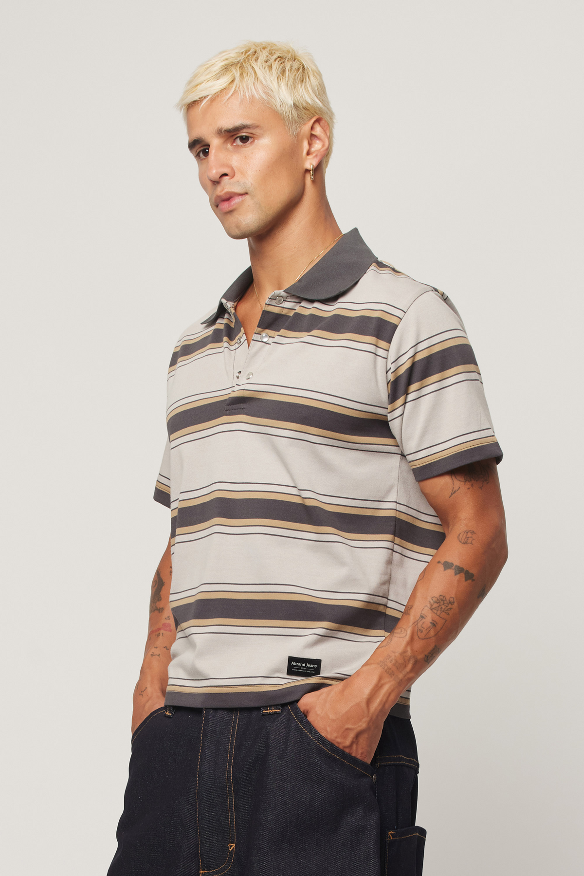 Old-school sport vibes, with a sharper finish. The Jeremy Polo brings a ‘90s edge with its fitted shape, bold stripes, and open collar