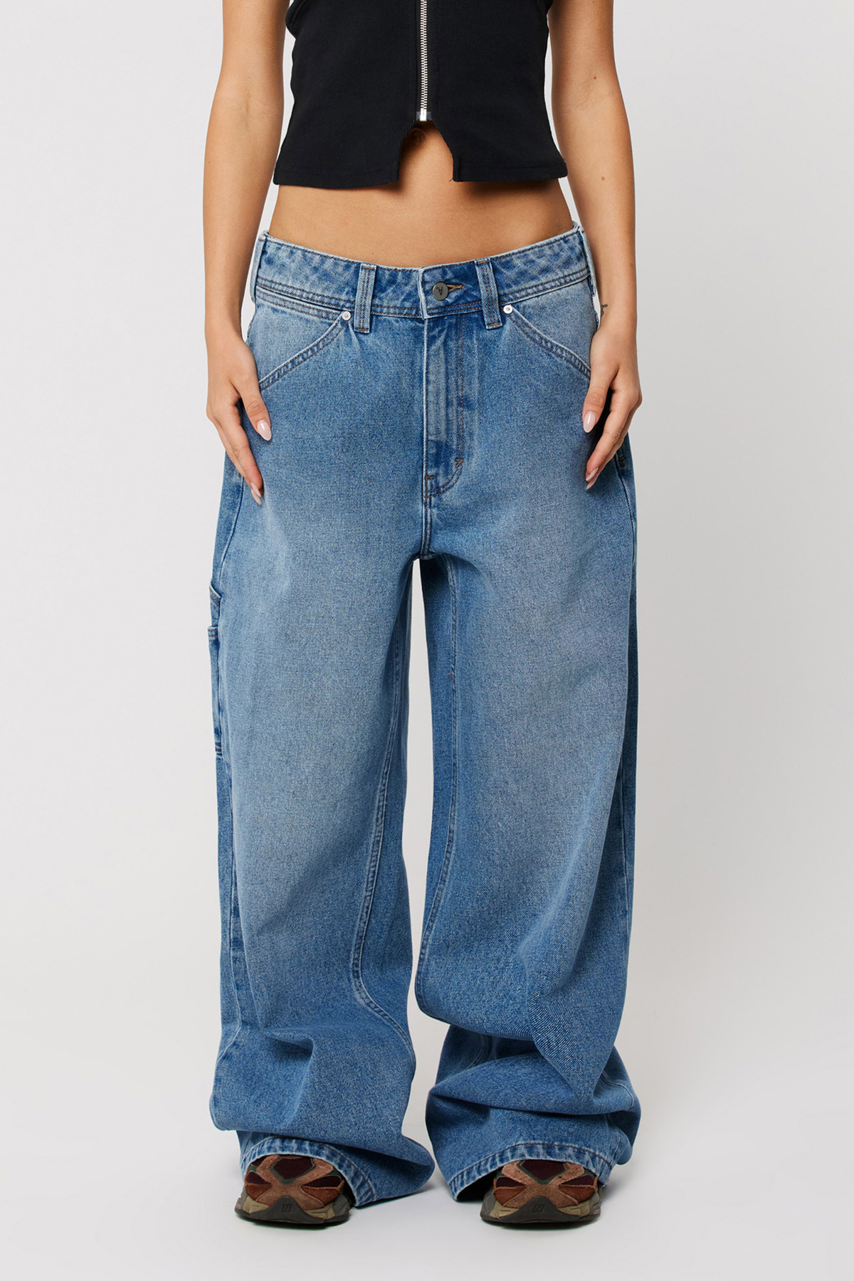 - With a mid-rise waist that sits just below the belly button, these jeans offer an ultra-relaxed fit around the butt and thighs, with plenty of room around your legs for maximum comfort