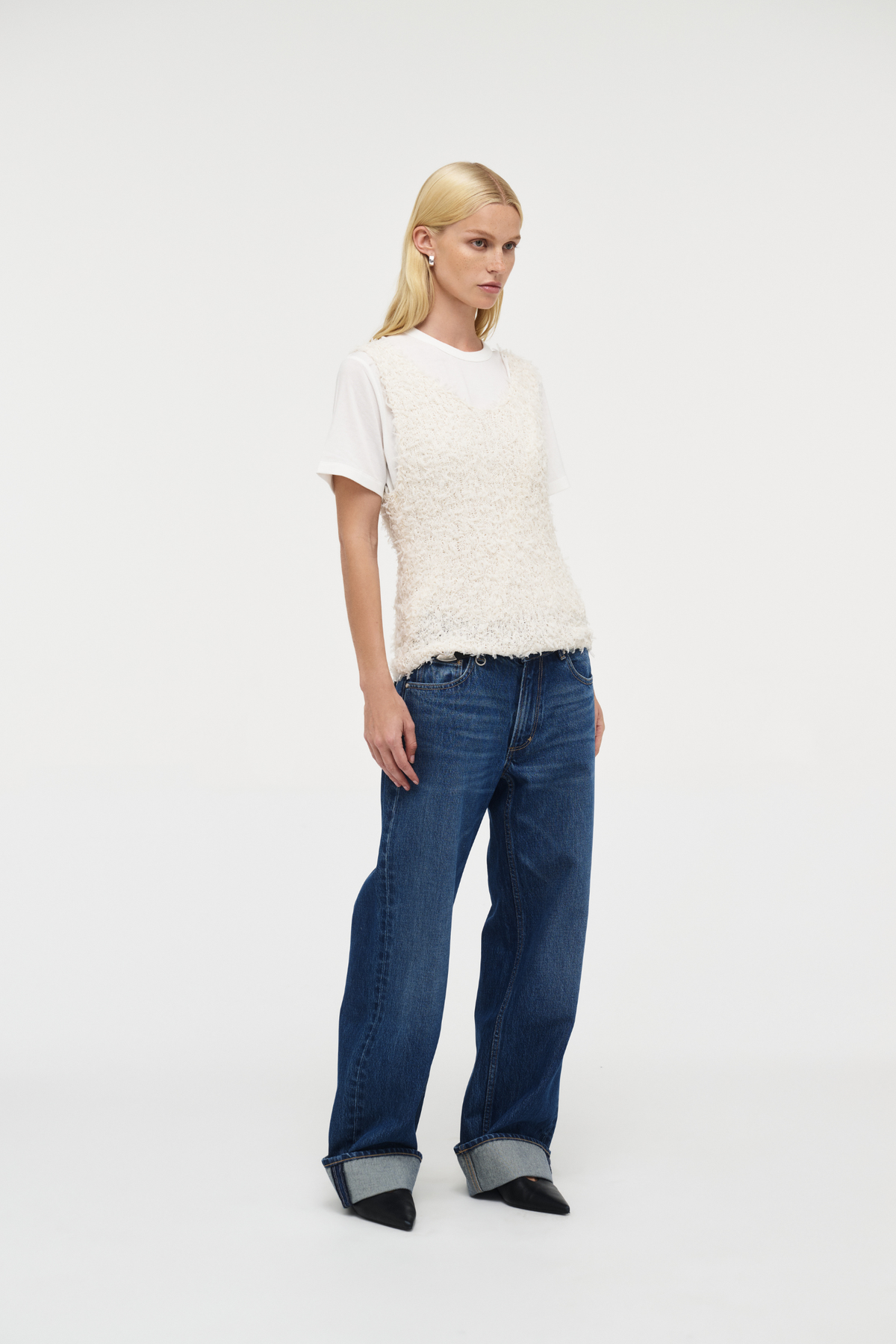 - The Daria Baggy is a relaxed, mid-rise jean designed to sit low on the hips and graze the shoe