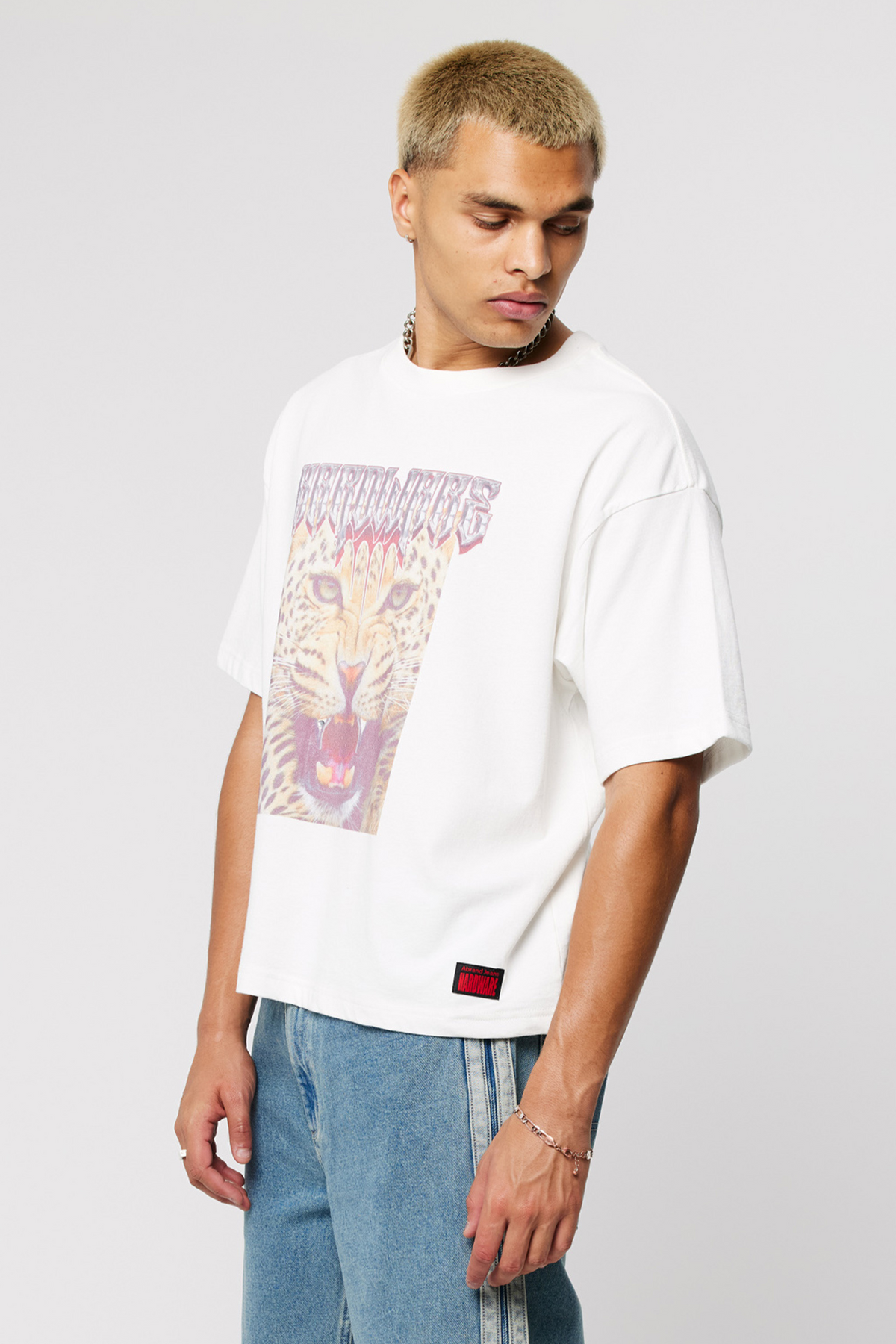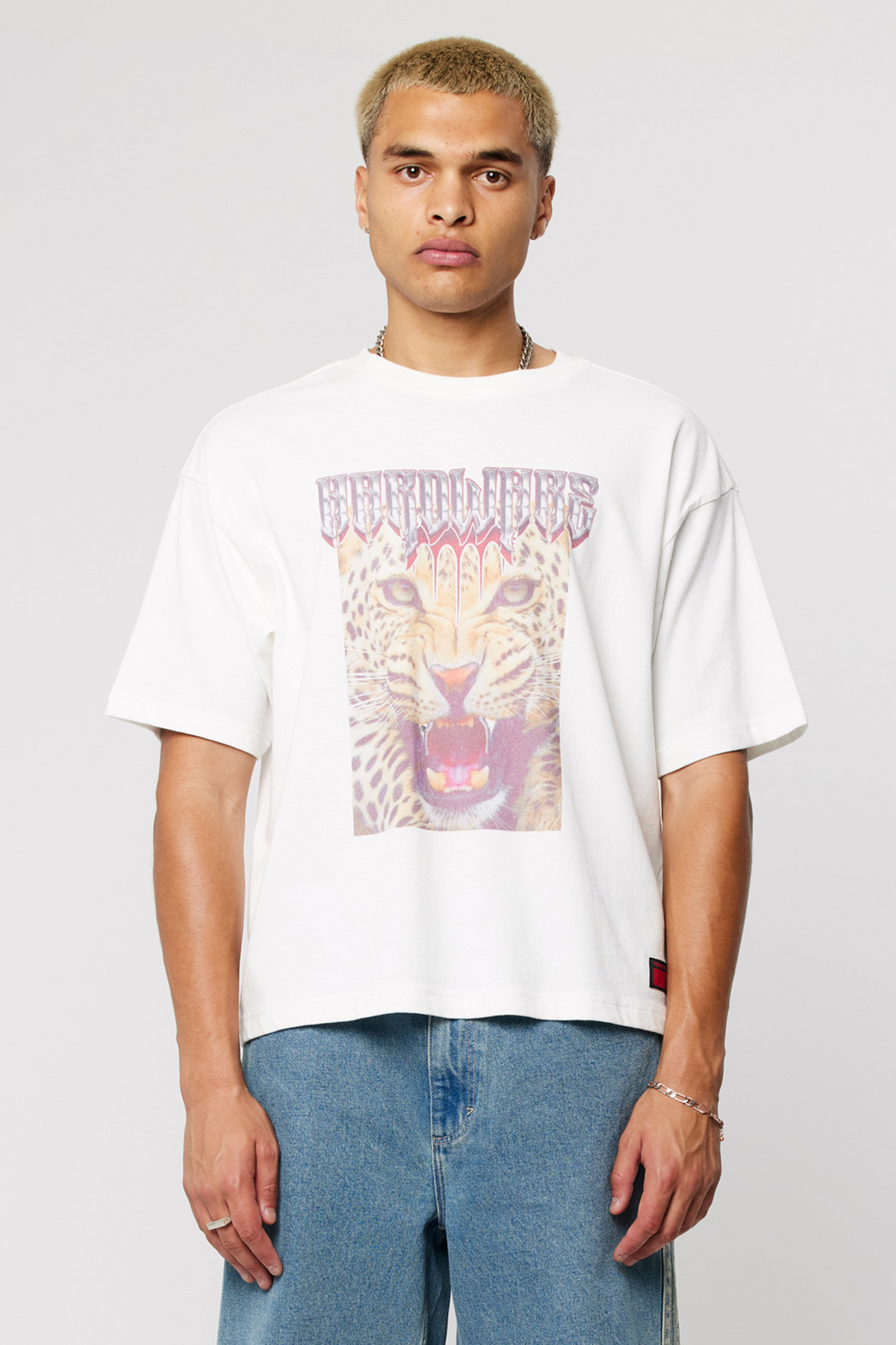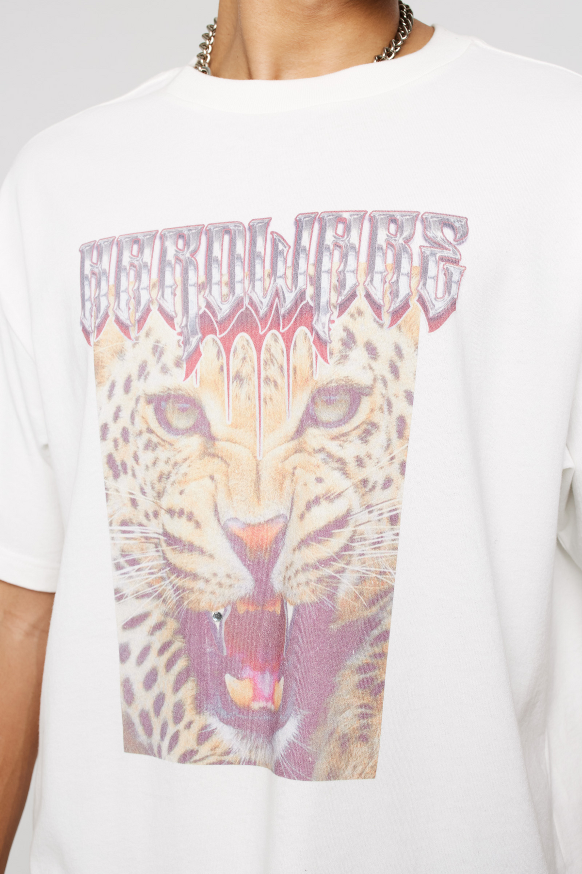 The clean white base is finished with the Hardware logo and a growling leopard graphic, complete with diamante detailing on the exposed canine
