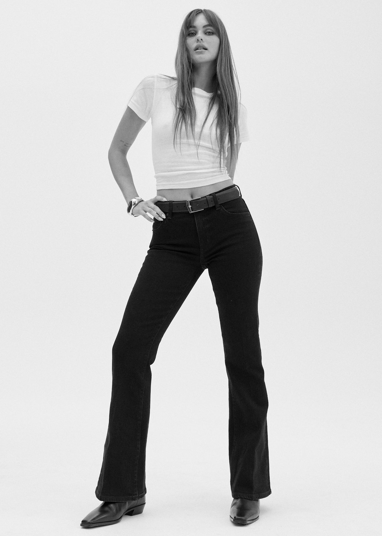 This is a low-rise flared jean, made with stretch denim. Fits true to size.