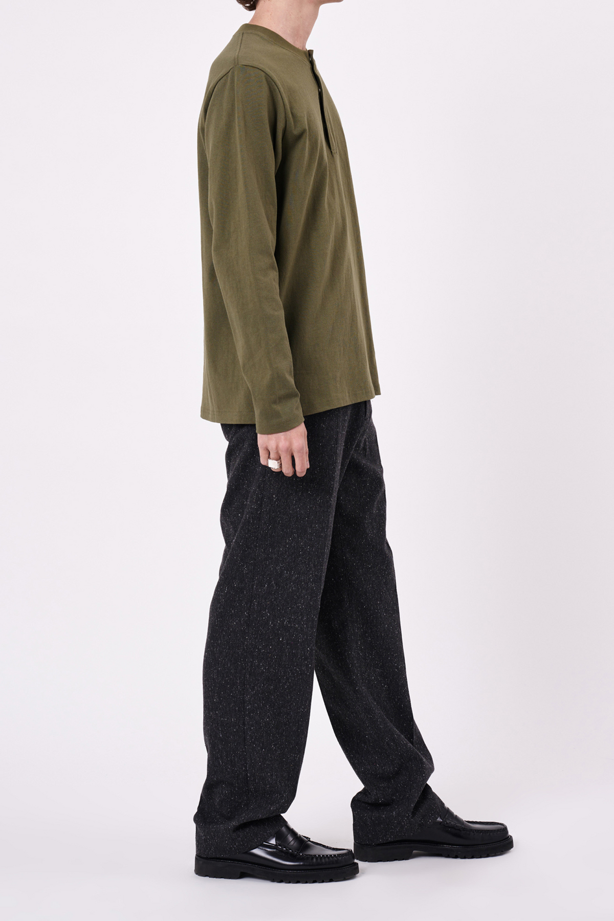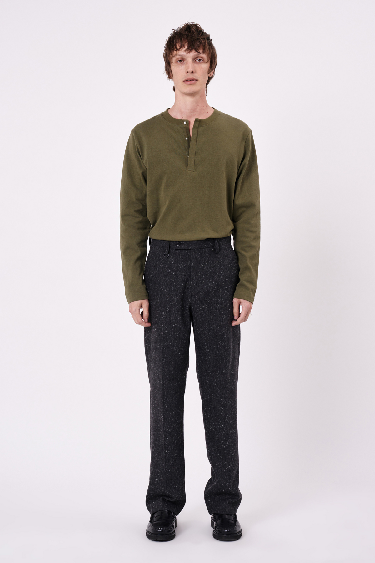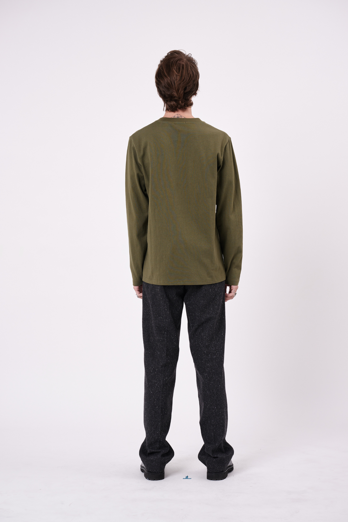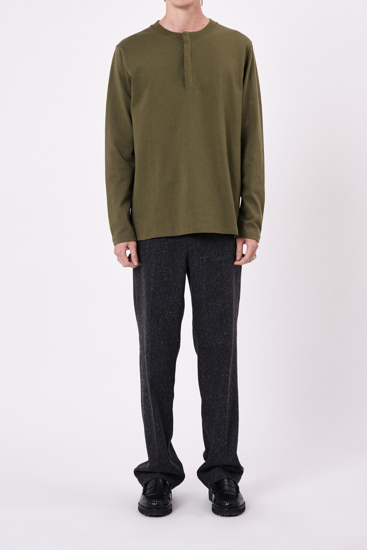 Long sleeve henley is designed with a regular fit and a front tab detail