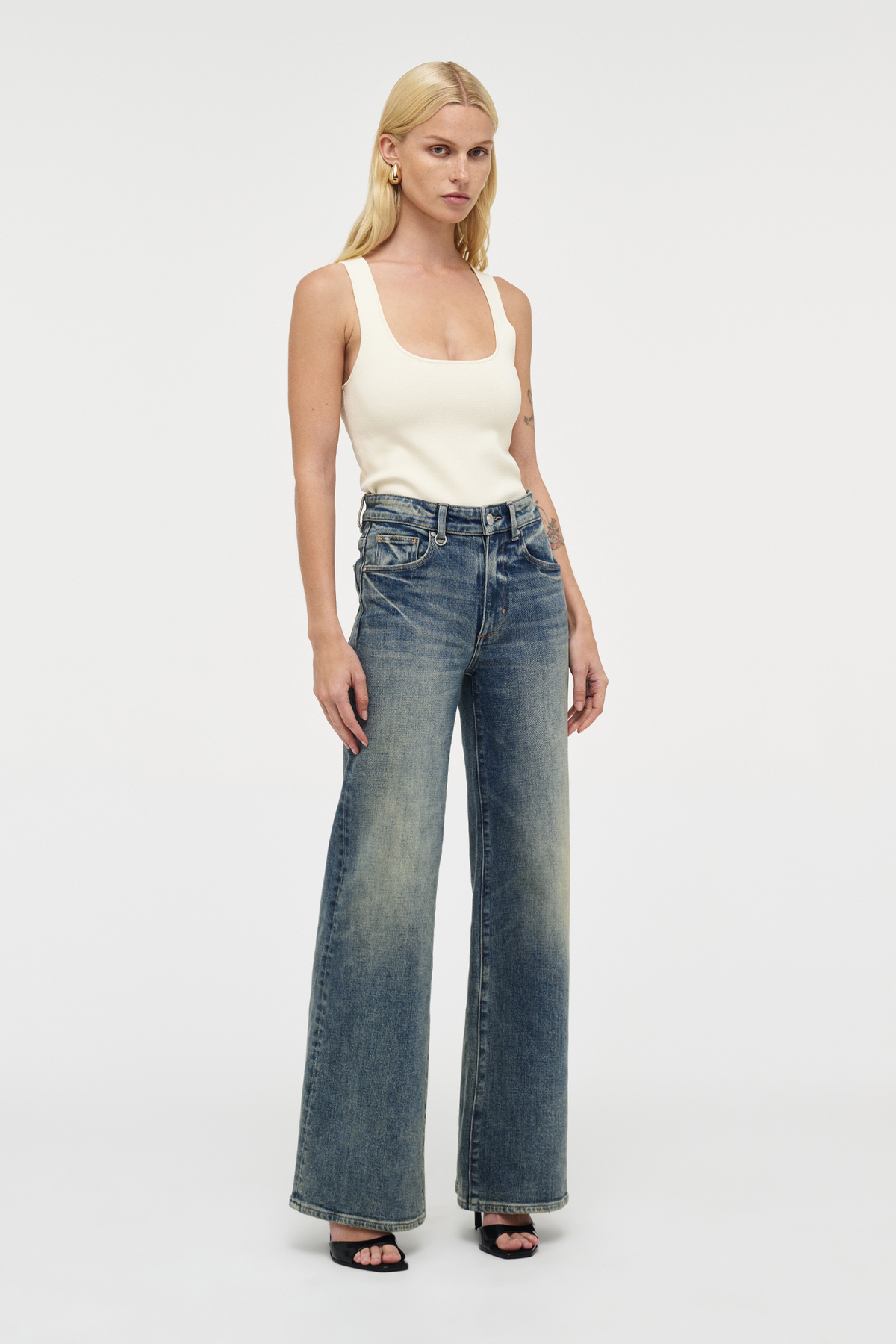 - The Eva Wide is a timeless, tailored wide-leg jean that skims the hips and falls into an elegant A-line