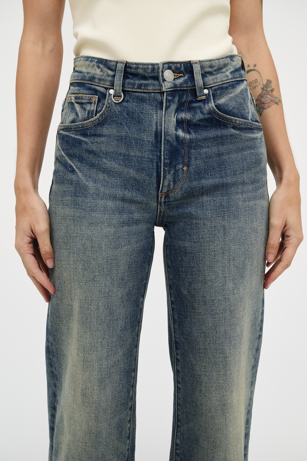 - The fitted mid-rise waist and elongated leg length offer a feminine take on a relaxed silhouette, combining sophistication with comfort