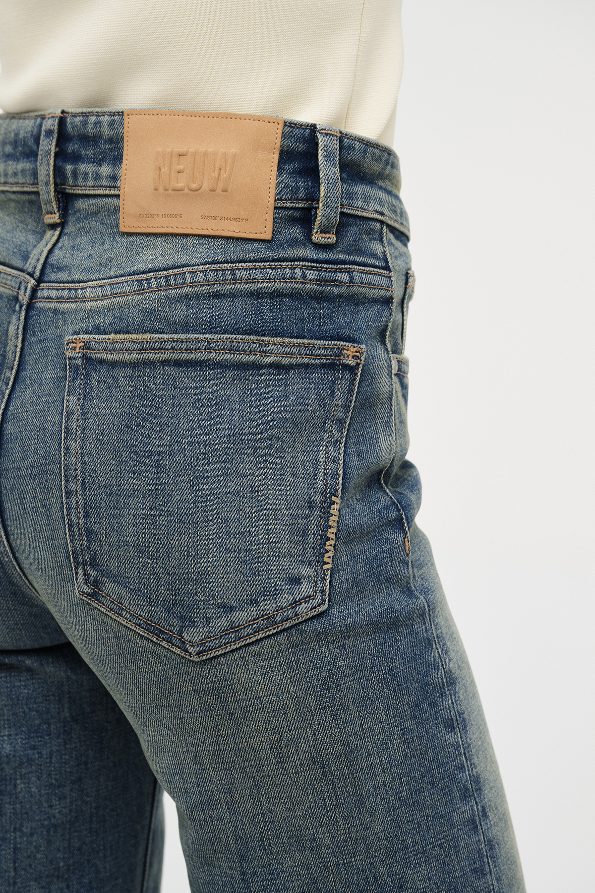 - Complete with our signature Neuw Denim repair stitch, back leather patch and fob ring