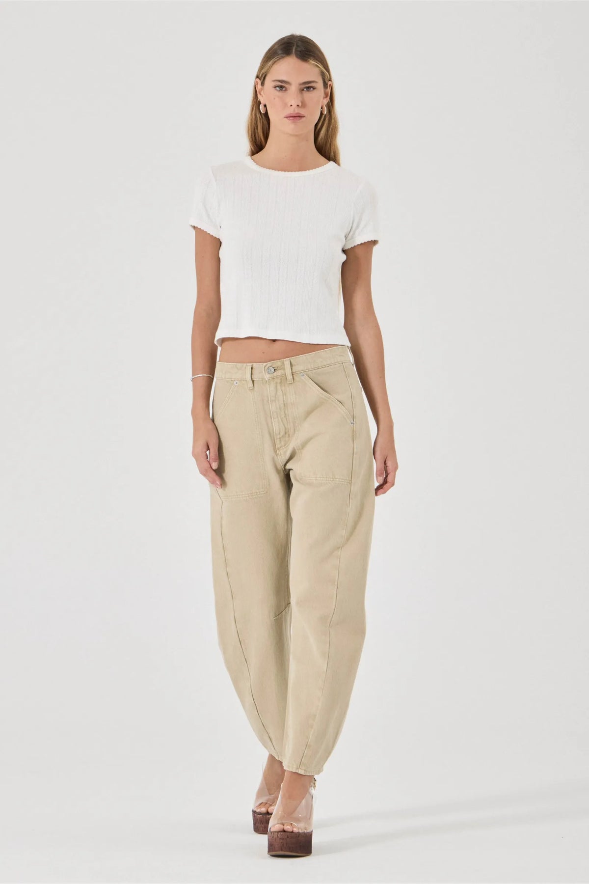 The Arc Barrel is a mid-rise pant with a relaxed barrel leg.