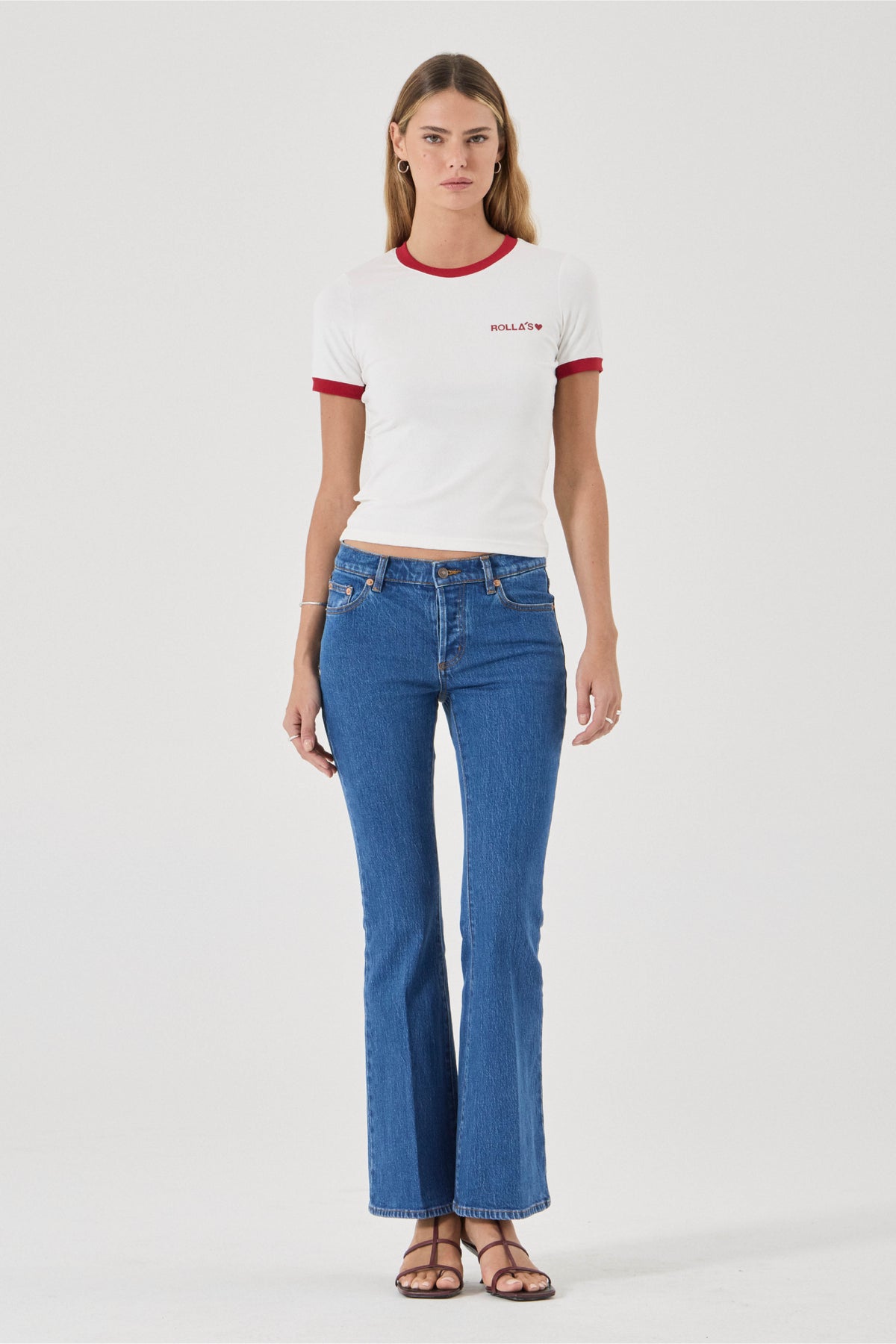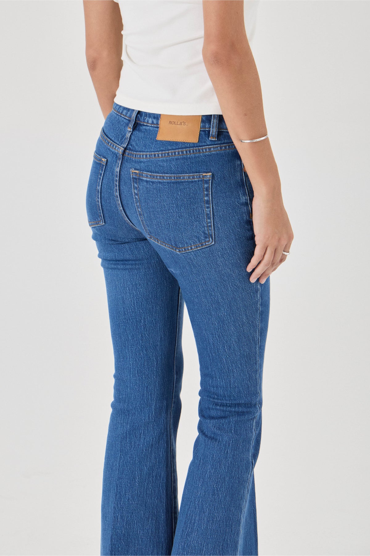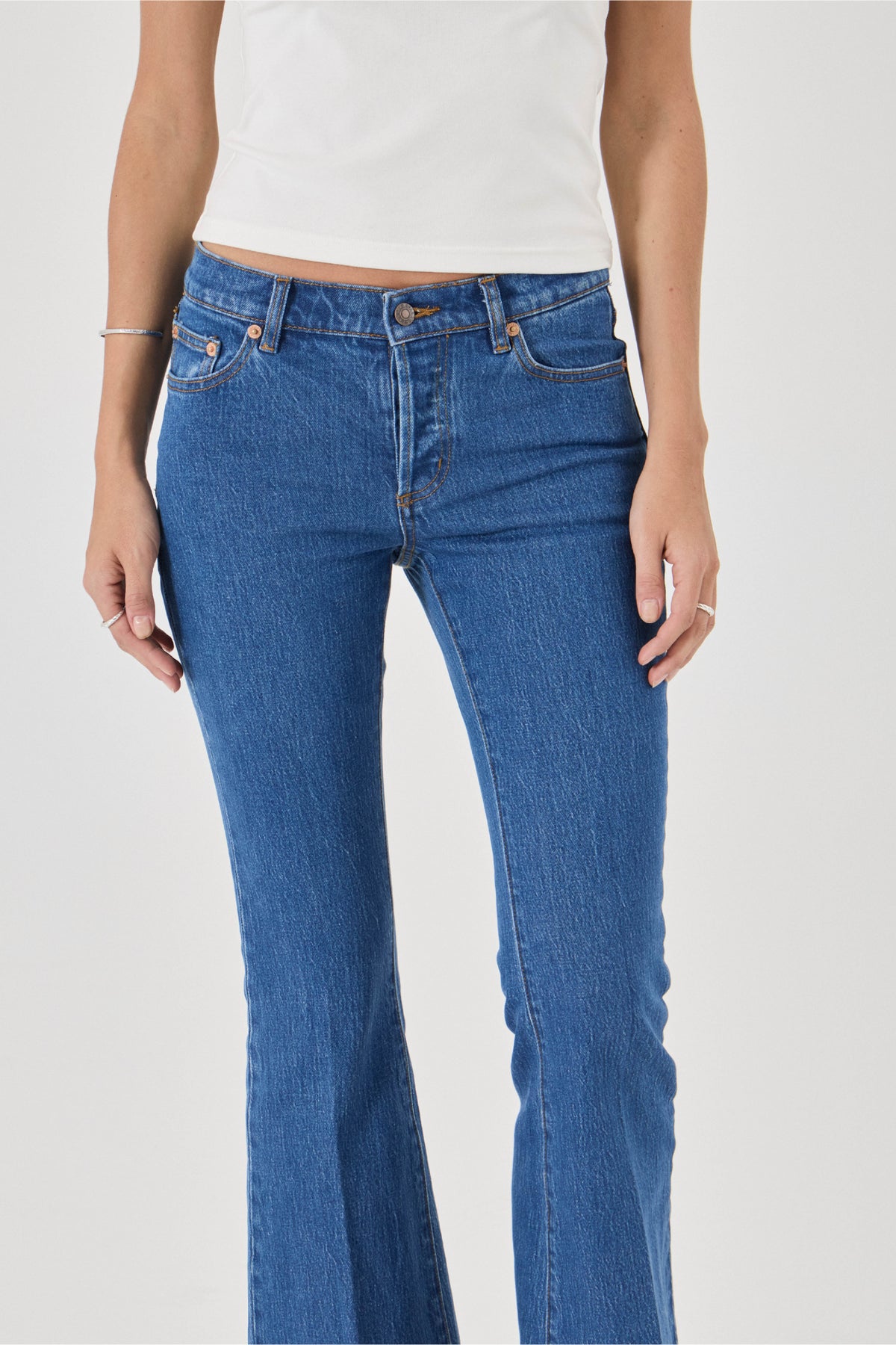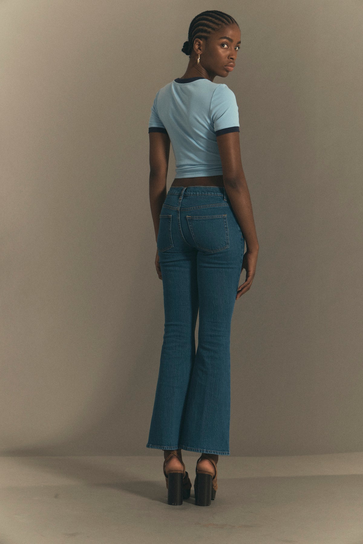 This is a low-rise flared jean, made with comfort stretch denim. Fits true to size.
