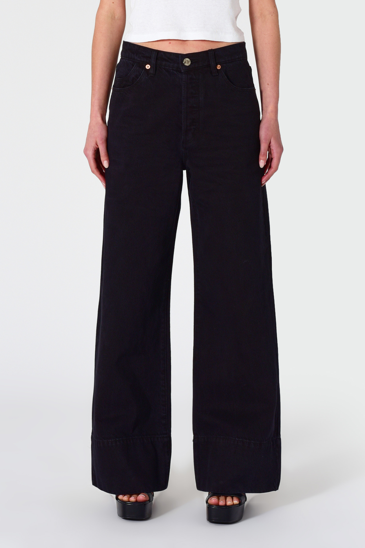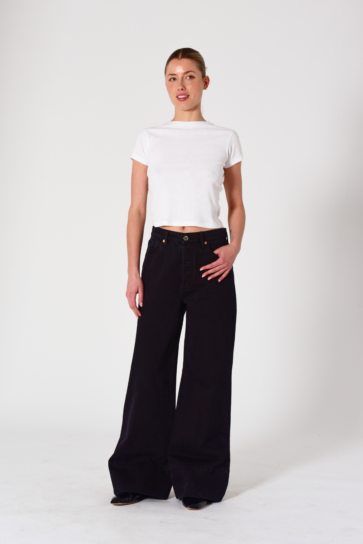 - Relaxed fit with a flared leg