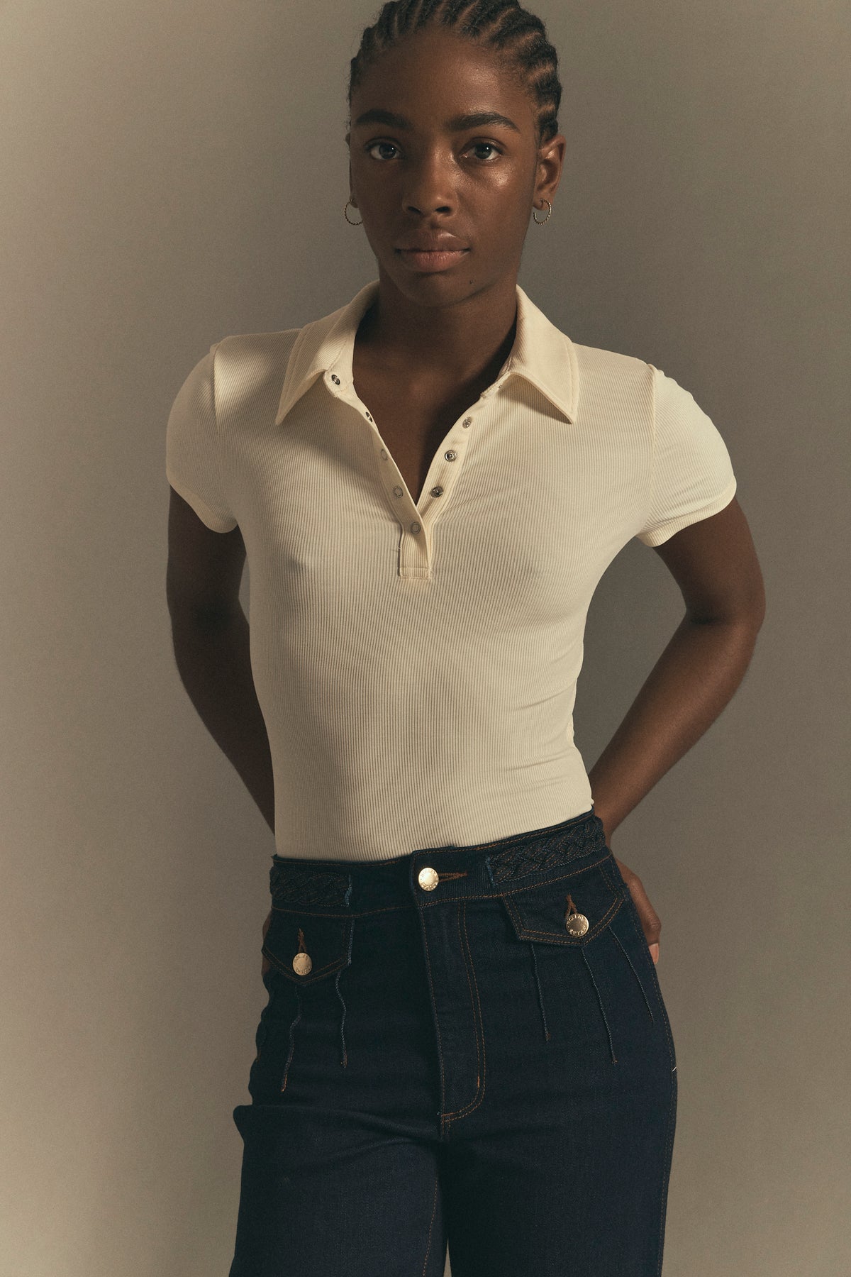A slim-fitting short sleeve polo top