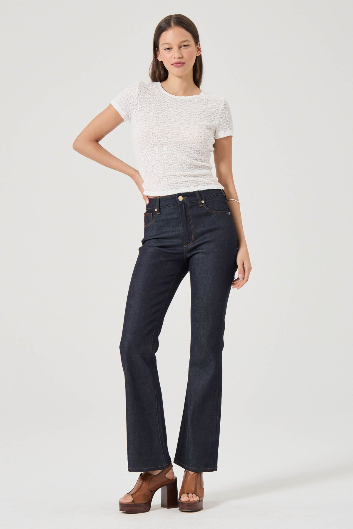 Our newest fit: a mid-rise, slim fitting bootcut jean