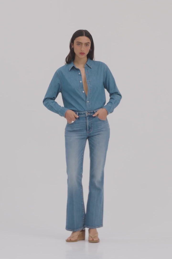 Our newest fit: a mid-rise, slim fitting bootcut jean