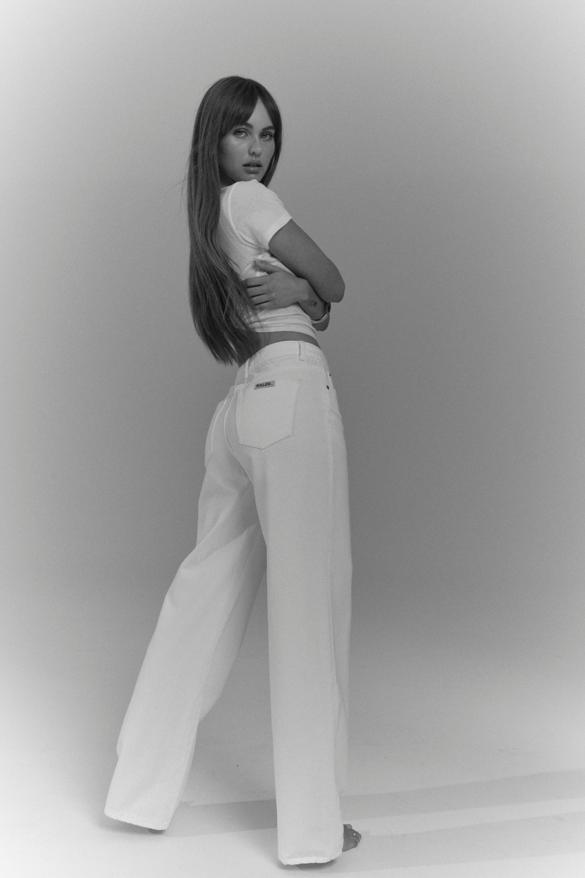 The Kate Baggy is a mid-rise, loose fit with a full-length baggy leg profile.
