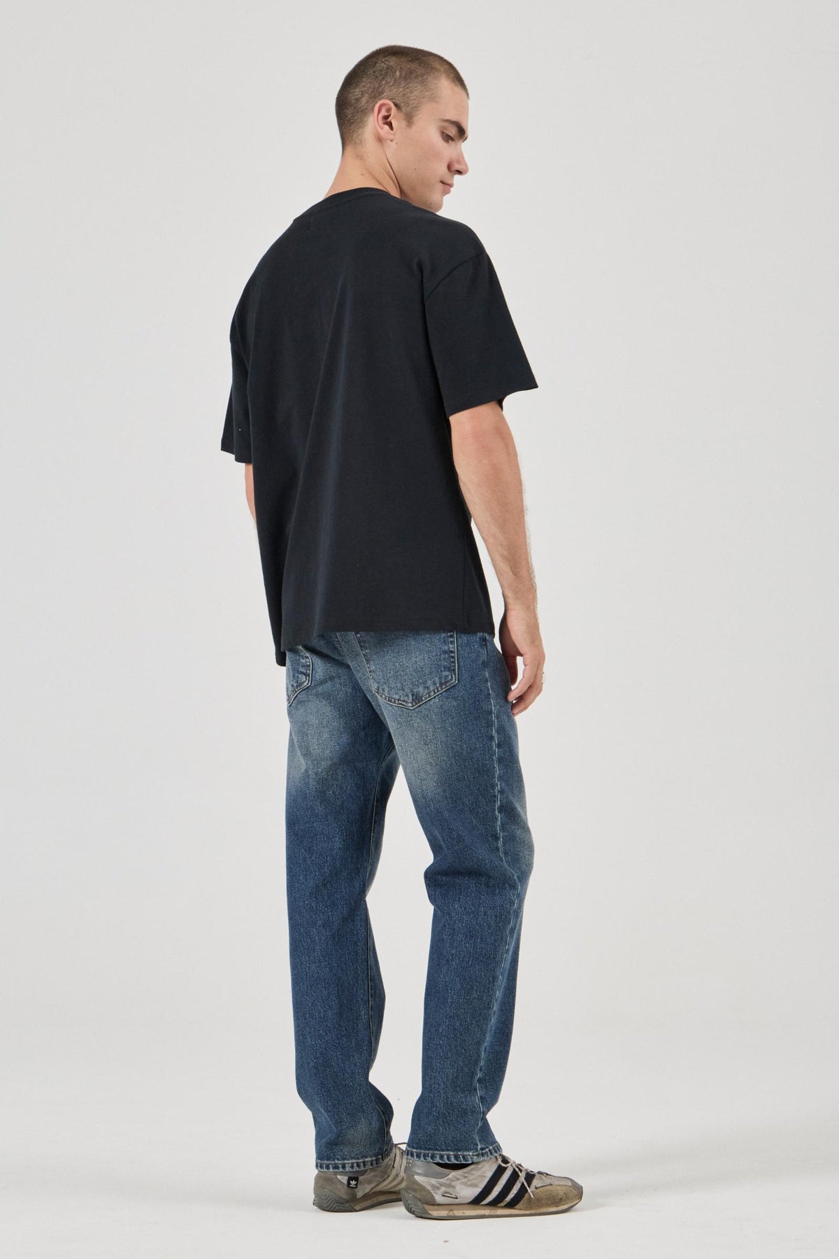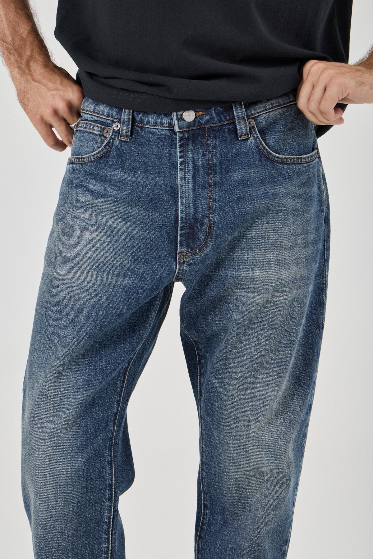 - Relaxed waistband, seat and thigh with a leg profile that is straight from the knee down to the ankle