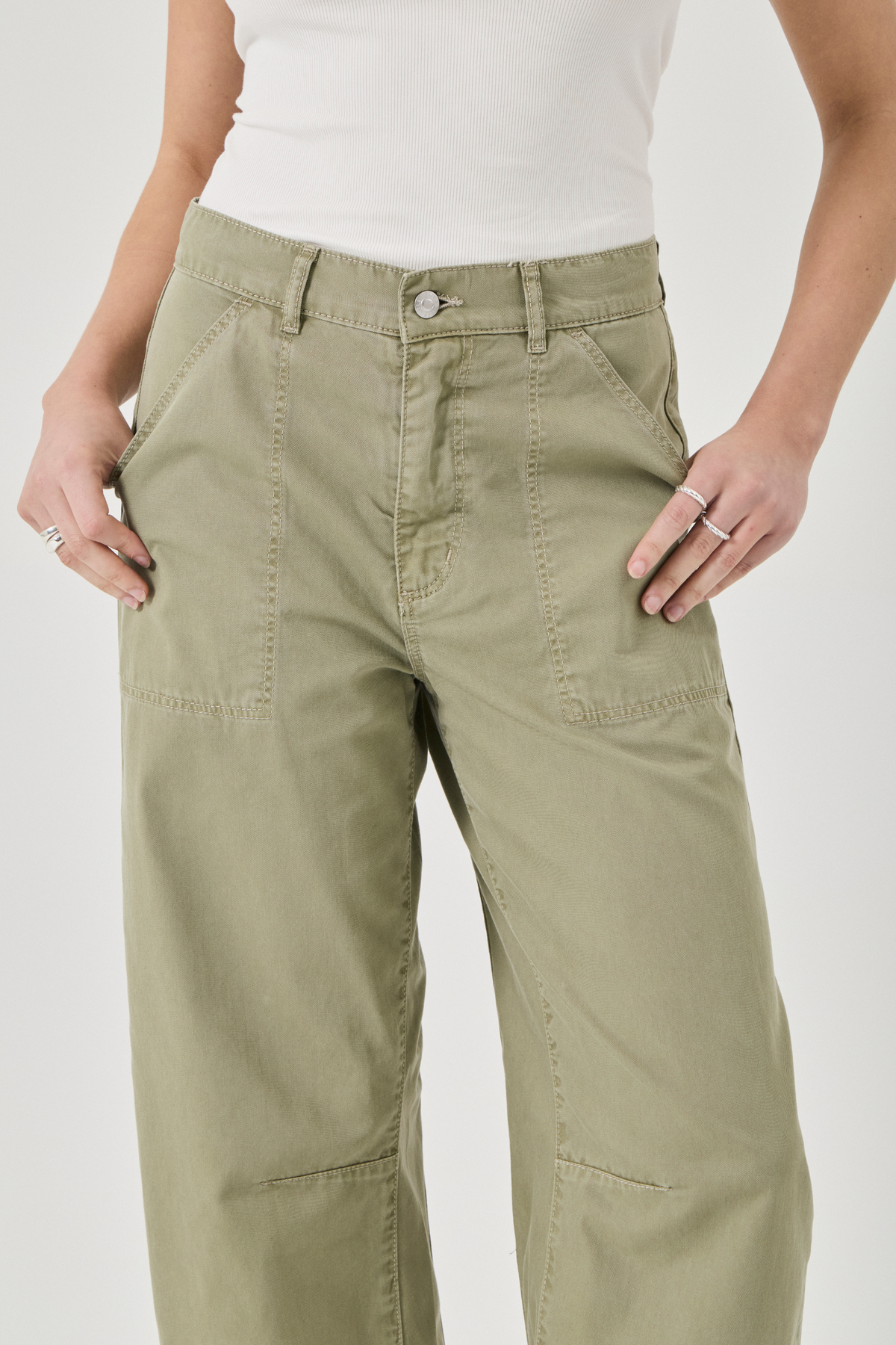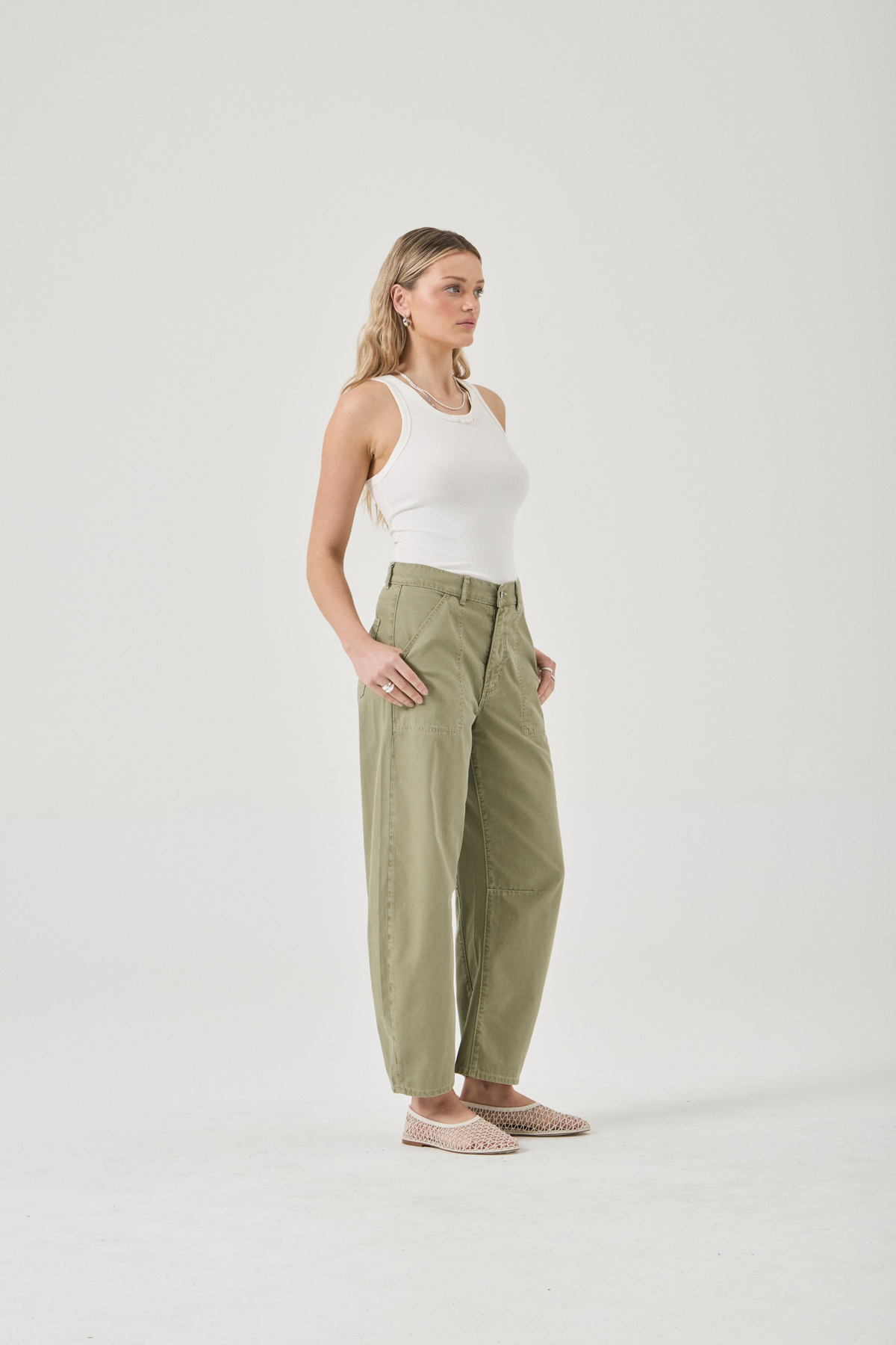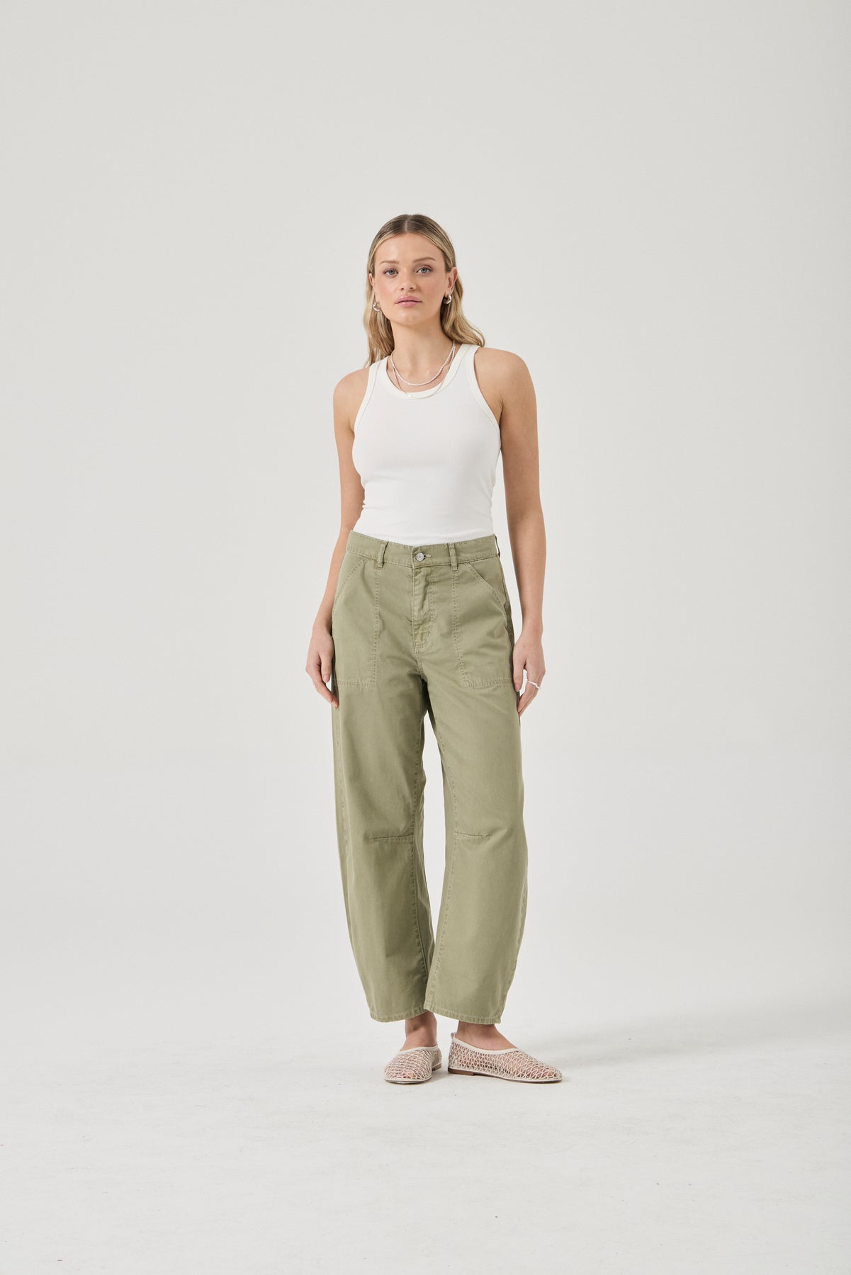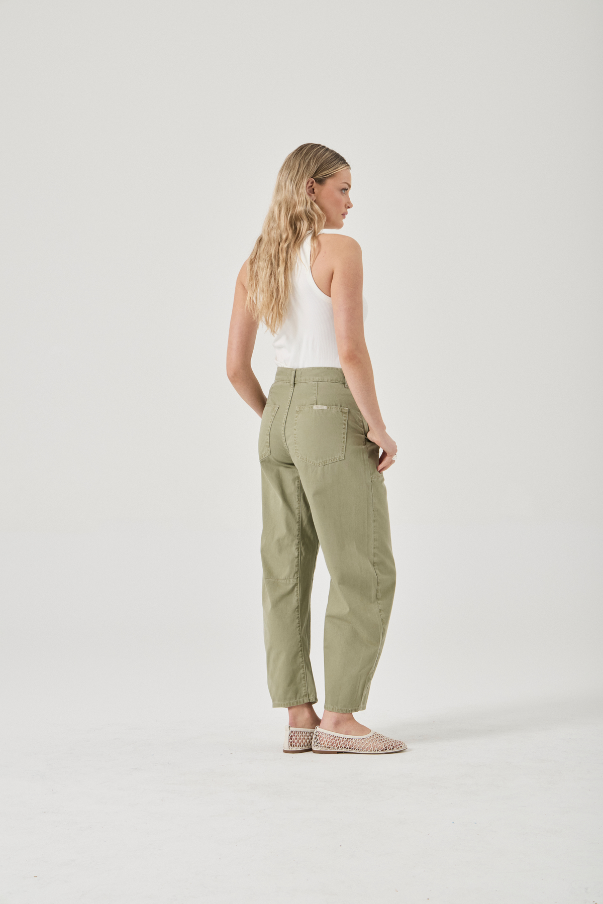 Gigi Barrel is a super high rise jean that holds through the seat, balancing the sculptural leg silhouette.