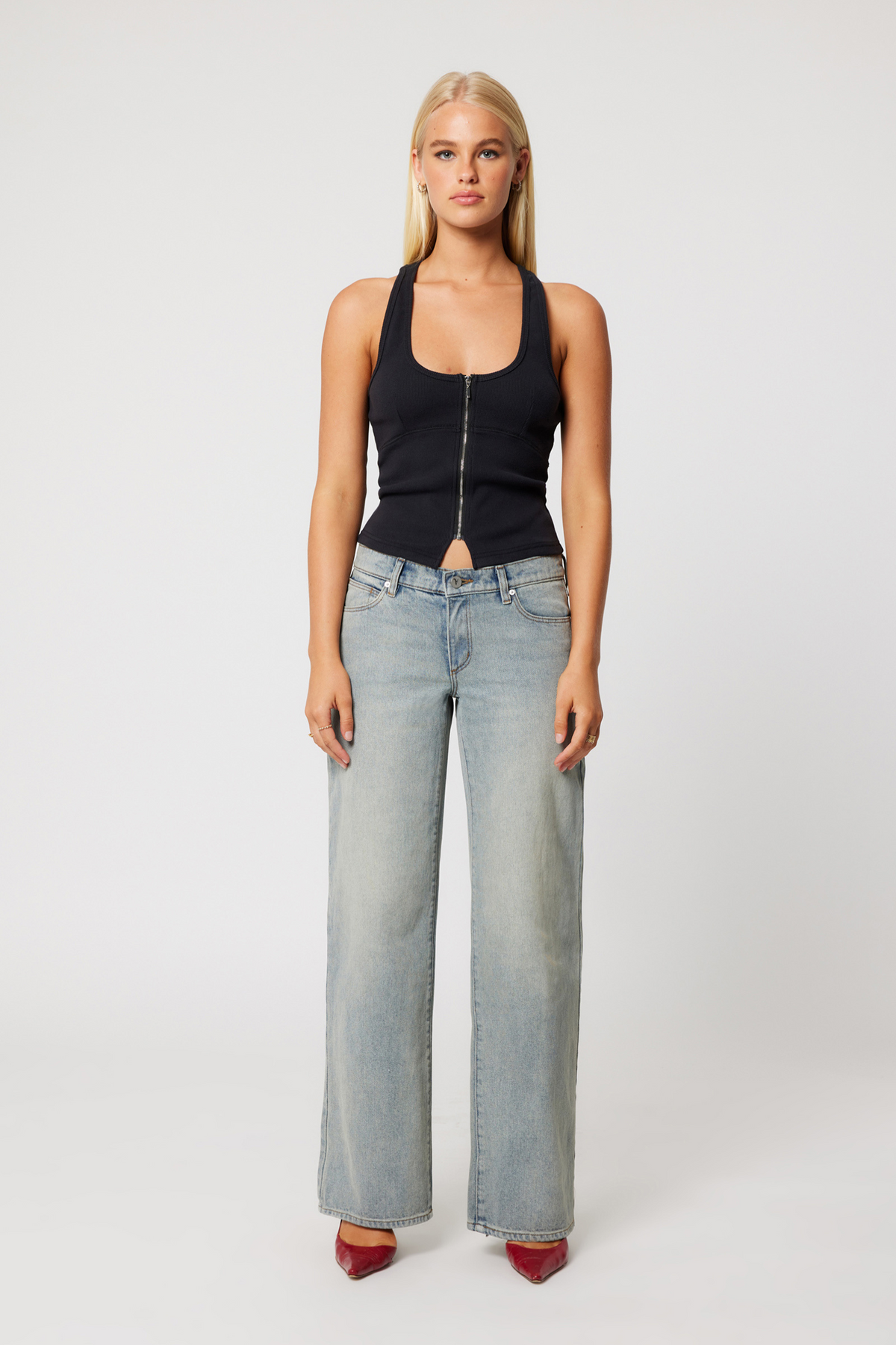 Low-waisted jeans or a mini skirt are the perfect pairing for this top